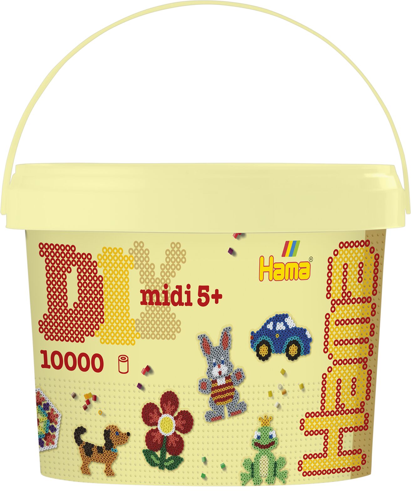 10 000 darabos, vegyes színű, vasalható gyöngy - tároló dobozban. Alkothatunk vele kedves állat-, vagy emberfigurákat, poháralátéteket, vagy akár ajándéktárgyakat. Segítségképpen használhatunk Hama ötletfüzetet is, de hagyatkozhatunk akár a fantáziánkra is.