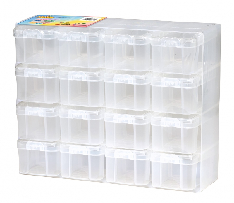 Ebben az átlátszó dobozban 16 rekesz van kialakítva, ezáltal a különböző színű HAMA gyöngyeidet praktikusan tudod tárolni és rendszerezni.