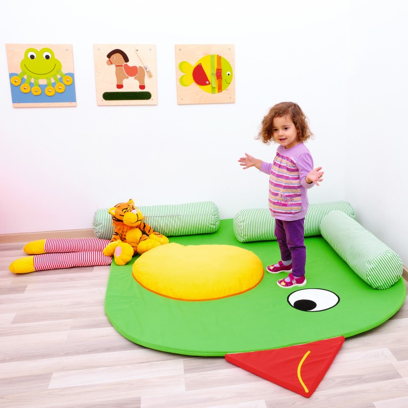 A szivacs és a puha henger alakú párna együtt, egy biztonságos és kényelmes eszközt alkot. A henger párna segít a gyerekeknek abban, amikor szeretnének felülni, és így könnyebben megtalálják az egyensúlyt. A kicsik így biztonságosabban és bátrabban mernek mozogni.