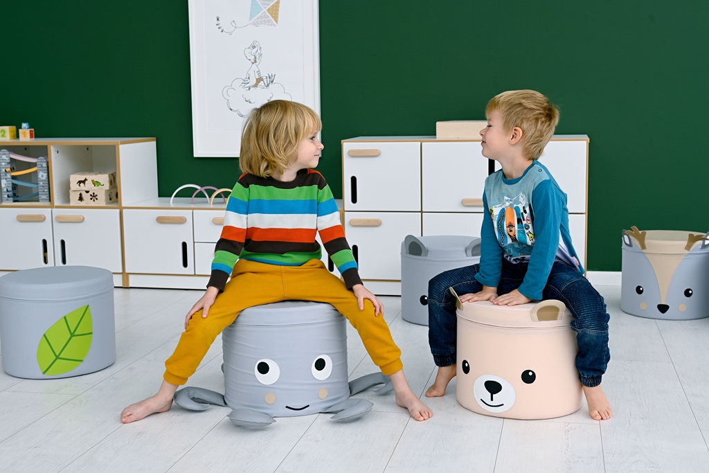Aranyos állatos puff, amely a babaszoba hangulatos dísze lehet. Kedvelt termék bölcsődékbe, óvodákba vagy csoportos foglalkozásokhoz. A gyerekek könnyen tologathatják, vagy mozgathatják.