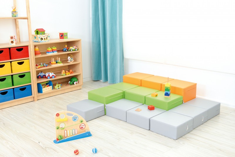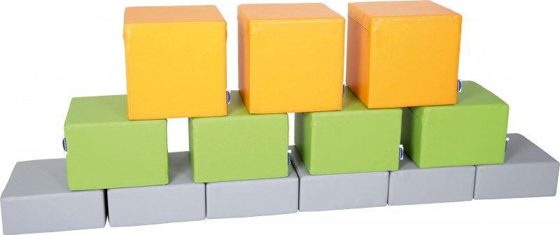 A különböző méretű színes puffok segítenek kialakítani egy kellemes, pihenésre alkalmas sarkot a csoportszobákba. A puffokból építhetünk vagy akár akadálypályaként is használhatjuk. Pihenéshez és játékhoz is kiváló.