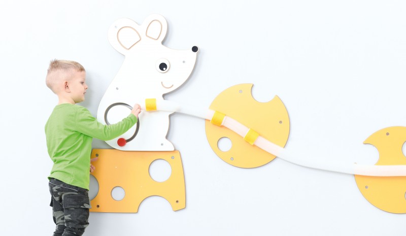 A fali golyópálya MDF bútorlapból készült, a műanyag cső színes tépőzárakkal van felszerelve. Színes és lenyűgöző megjelenésének köszönhetően szuper kiegészítője lesz a csoportszobáknak.