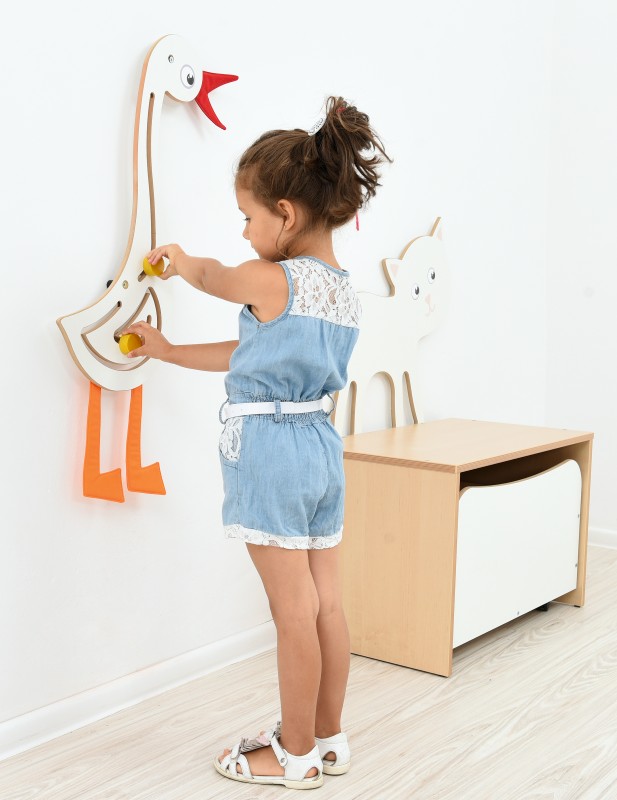 Falra szerelhető liba vonalvezető, amely vidám és színes megjelenésű. Nem csupán a dekorációért felel, hanem készségfejlesztő feladatokat is lehet vele végezni.