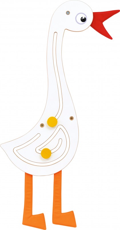 Falra szerelhető vonalvezető liba formában.A liba teste fehér színű, csőre piros, lábai narancssárgák. A testen 2 vonalrendszer található, melyekben 1-1 citromsárga korongot kell végigvezetni. Hosszú és vékony nyakán fut végig az egyik vonalvezető rész, a másik a testén látható. A vonalvezető MDF bútorlapból készült, mérete: 30x70 cm. A termék magas minőségű anyagok felhasználásával készült. Anyagának köszönhetően könnyedén tisztítható.