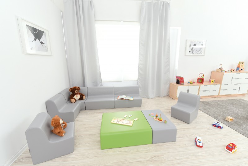 Színes habszivacs asztal, tartós, PVC anyaggal borítva, könnyen tisztán tartható. Az anyag ftalátmentes.