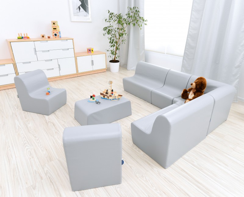 A kanapé ülésmagassága 26 cm, kimondottan gyerekek számára lett kielakítva. Szélei lekerekítettek. Háttámlájának dőlésszöge megfelelő tartást nyújt a hátnak. A kanapé mérete 75x50x52 cm.