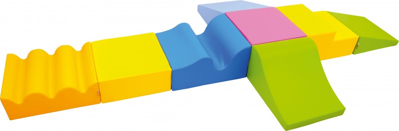 A szett tartalma 8 különböző szivacsmodul. Az eltérő mozgásformát igénylő elemeket tetszés szerint variálhatjuk. Lehet akár 1 nagy, vagy 2 kisebb szettet is összeállítani.