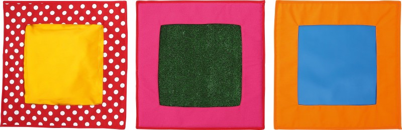 Különböző töltetű négyzetek, pamutszövettel bevonva, csúszásmentes gumival az alsó részeken.