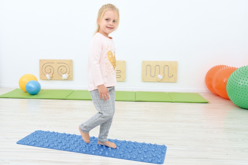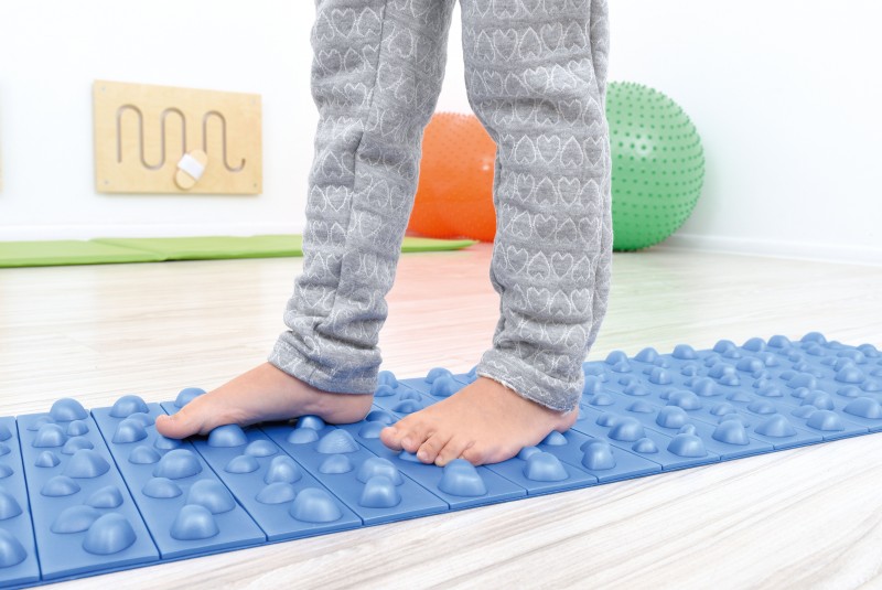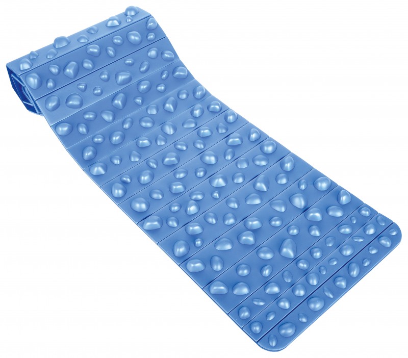 Kék színű, masszírozó szőnyeg, kő formájú kiemelkedő betétekkel.