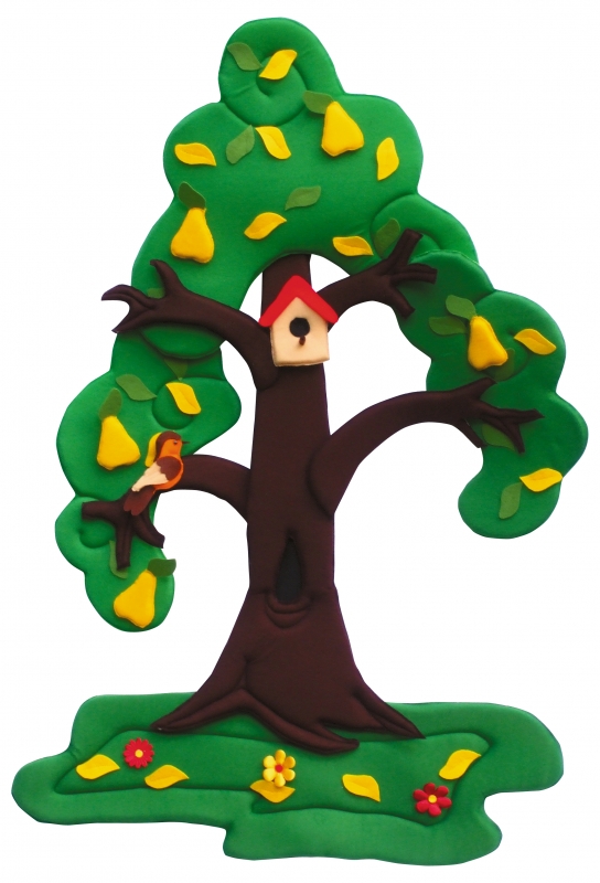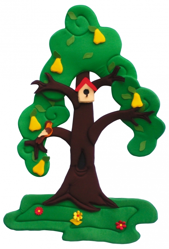 Fali dekoráció, amely egy körtefa segítségével mutatja be az évszakok változását.
