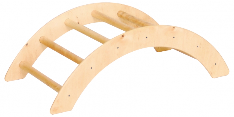 A félkör alakú, tömör fa mászóka fejleszti a gyermek egyensúlyozó képességét, nagy mozgását, a szem-kéz és a szem-láb koordinációját.