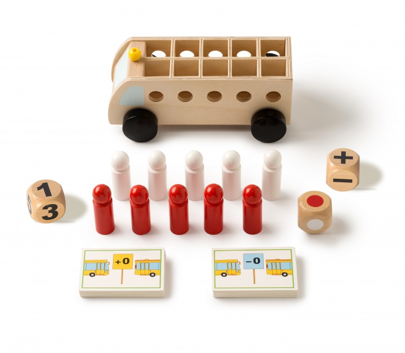 2. Üres busszal kezdjük a játékot. 2 dobókockával dobunk (számos és színes). A dobásnak megfelelő színű és számú utast tegyük bele a buszba. Ezután számoljuk meg hányan ülnek a buszon összesen.