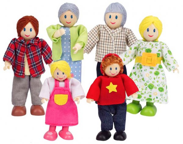 A Hape babaházak egyik nagyszerű kiegészítője ez a 6 darabos készlet, melyben anya, apa, nagymama, nagypapa, kislány és kisfiú találhatók.