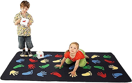 Tartalma: 1 db kéz- és lábnyomos játszószőnyeg és 2 db műanyag dobókocka.