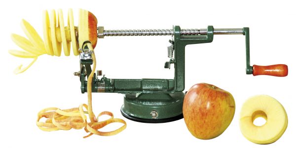 Egy fantasztikus szerkezet, amellyel még soha nem volt ilyen egyszerű és szórakoztató az almahámozás. Befogjuk a mosott almát, beállítjuk, hogy milyen vastagon hámozzon és addig tekerjük a kart, míg egy szabályos alma spirált nyerünk.