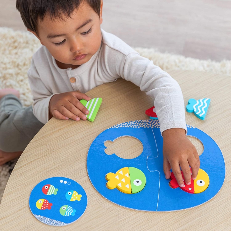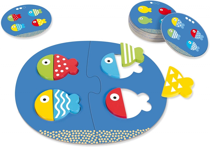 Ebben a játékban a feladatlapoknak megfelelően kell szín és forma szerint összeállítani a halacskákat.