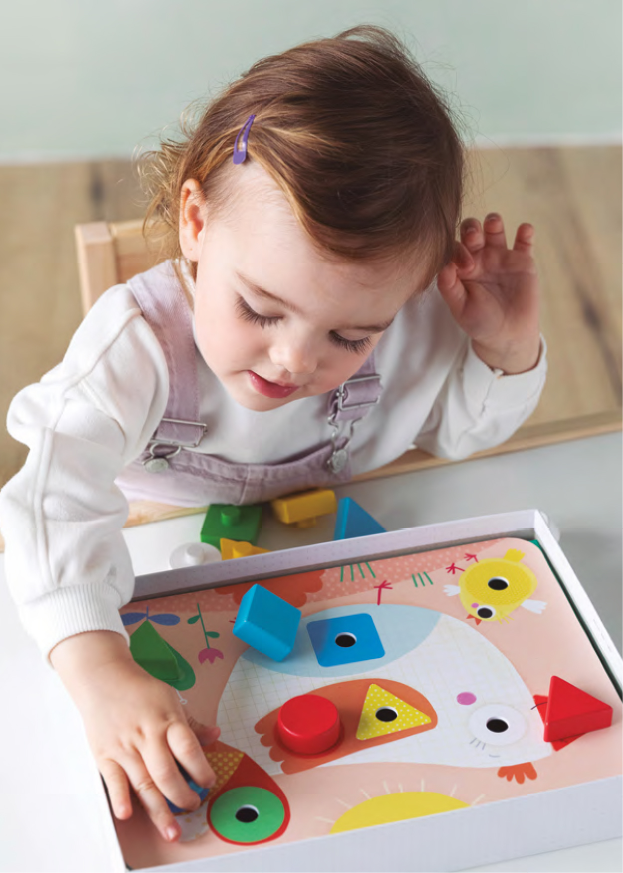 A geometriai formák tartós fából készültek, jól beleillenek a pici kezekbe könnyű őket megfogni, ezért a játék már 2 éves kortól ajánlott.