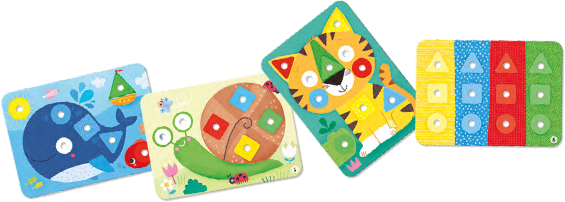 Mindegyik játéktáblára meghatározott színű és geometriai formájú elemet kell felhelyezni. Ebben segítséget nyújt, hogy a geometriai formák kis csapokkal vannak ellátva és ezeket kell beilleszteni a lyukakba. A feladatkártyák különböző nehézségűek.