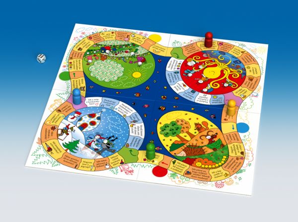 A legegyszerűbb játéktípus a kártya-gyűjtögetés, a második nehézségi fok a színekkel való ismerkedés, a tábla közepén fekvő Nap felé haladva, a harmadik egy klasszikus lépegetős, számolós játék, melynek célja eljutni a pöttyös katicaházba, a negyedik, beszélgetős játékhoz pedig felnőtt segítsége szükséges, aki felolvassa az évszakok témájához kapcsolódó kérdéseket.