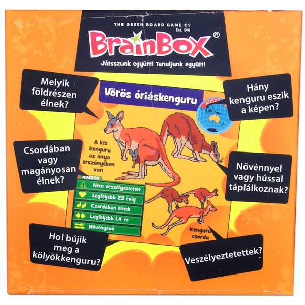 A BrainBox Állatok remek agytorna és szórakozás, egy vagy akár több játékos részére! Jegyezz meg minél több információt 10 másodperc alatt a kihúzott kártyán szereplő állatról, majd dobj a kockával és válaszolj helyesen a kidobott szám szerinti kérdésre. De ne húzd az időt, mert a homokórán gyorsan leperegnek a szemek! A válaszokat a kártyán ellenőrizheted. Ha jó megfigyelő vagy és ismered az állatokat, akkor a legtöbb kártya nálad landol!