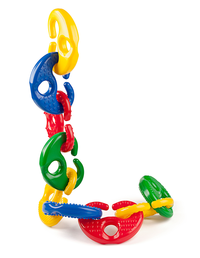A láncszemek élénk, alapszínekből állnak, így színtanulásra is használhatók. A feltűnő színeken túl, minden darab különféle felületi mintázattal van ellátva, a taktilis érzékelés fejlesztése céljából.