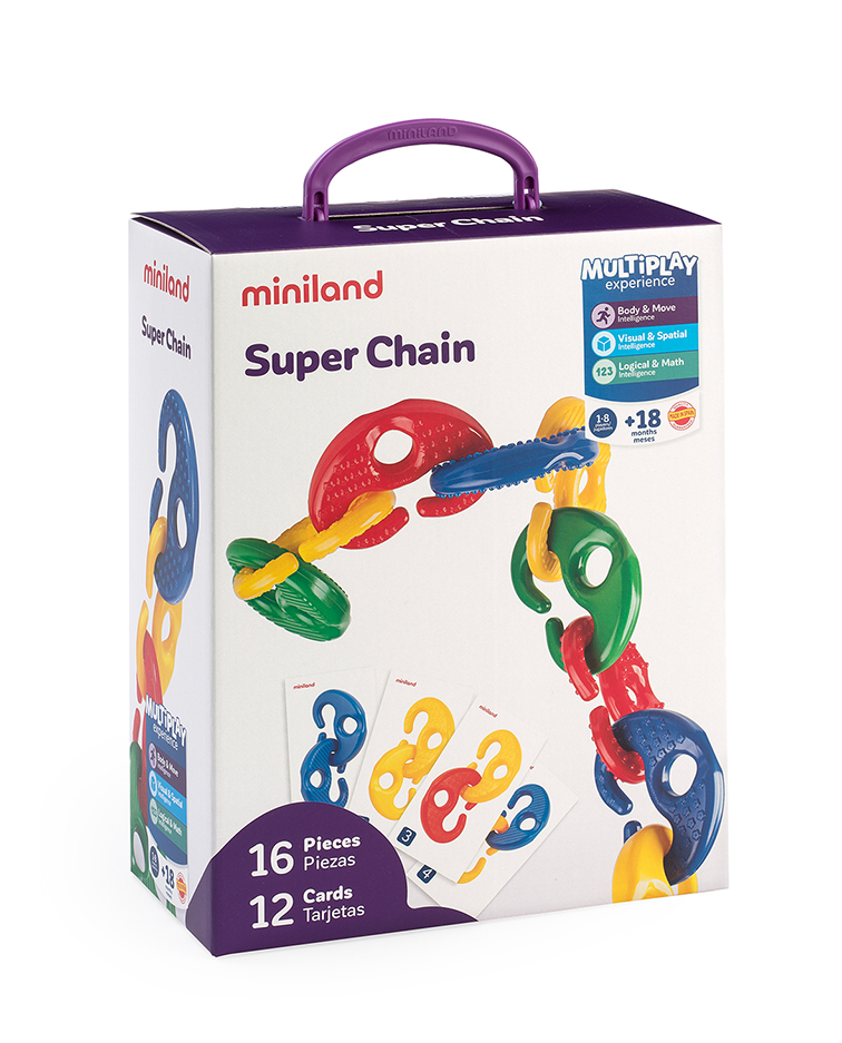 Az óriás láncszemek kialakításának köszönhetően, már a 18 hónapos korú gyermekek is meg tudják fogni és ügyesen egymásba akasztani őket.