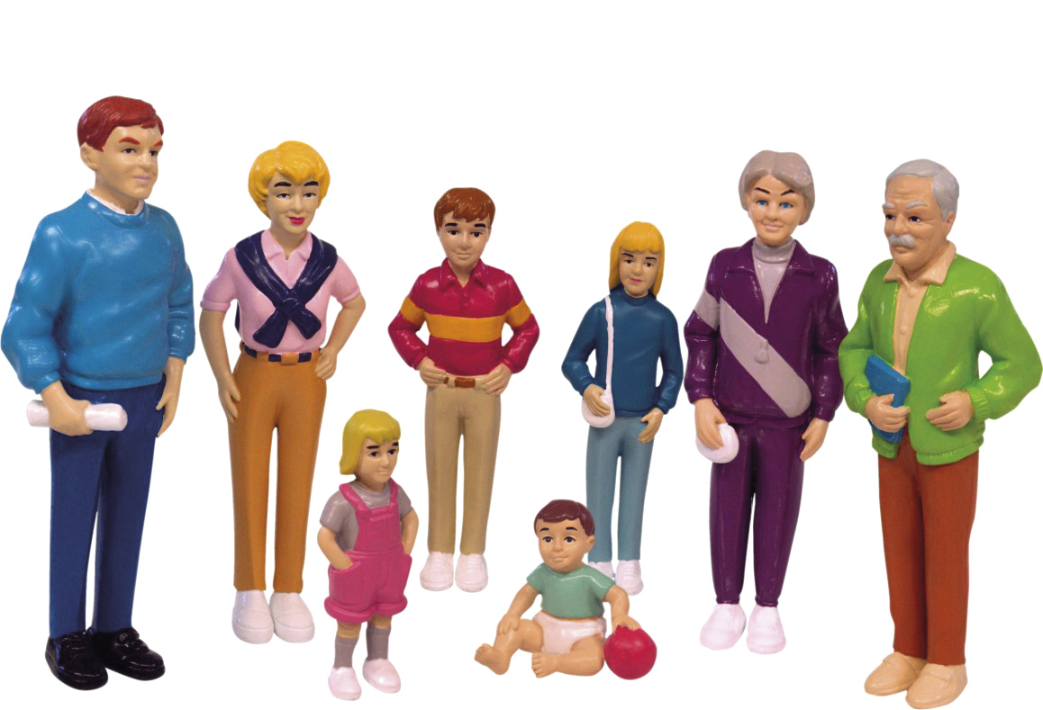 A család készlet több nemzedéket foglal magába, így a gyermekek egy teljes családi eseményt eljátszhatnak, annak minden pozitív és negatív jellemzőjével együtt. Ez segíti őket a kreativitásuk kibontakozásában, az együttélés szabályainak tanulásában és az élményfeldolgozásban egyaránt.