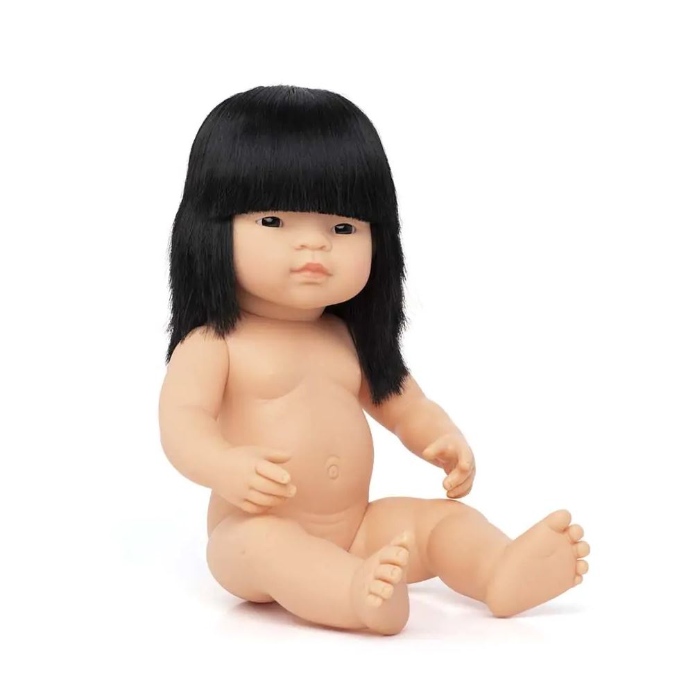 Az ázsiai babák szeme enyhén húzott, ezáltal a gyermekek már egészen kis korban megismerkedhetnek a világunkban élő embertípusok jellemzőivel.