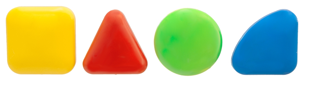 A pötyik teteje 4 különböző színben és formával lettek kialakítva, így a négyzet, a háromszög, a kör és a negyed körcikk is megtalálható. A készlet színei: sárga, piros, zöld és kék.