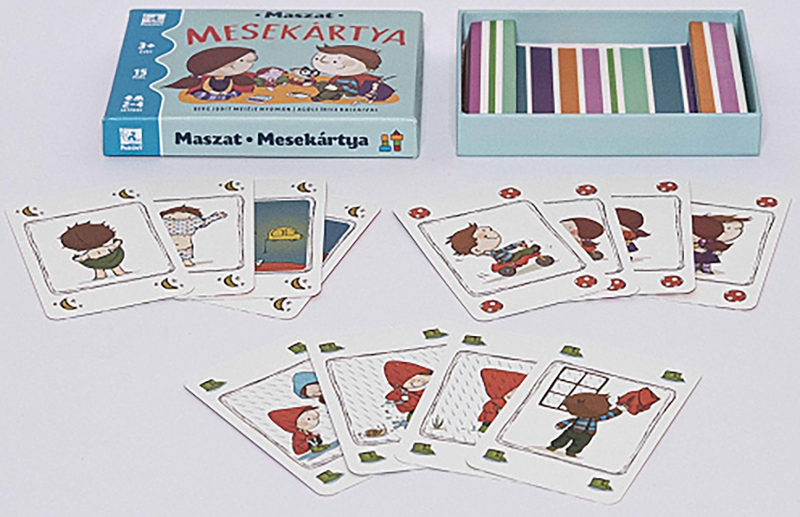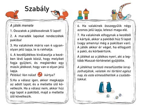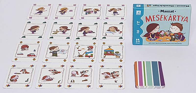 Vajon mit csinál Maszat és Sári egész nap? Elmennek kirándulni? Vagy születésnapot ünnepelnek? Gyűjtsd össze az egy meséhez tartozó lapokat, és meséld el Maszat, Sári, Hóchóc és Pötyi baba kalandjait! Utána pedig rajzold le a mesefüzetbe, hogy te mit szoktál csinálni reggel, délben, este! A Maszat Mesekártya klasszikus kvartett, ugyanakkor fejleszti a gyerekek szókincsét és az időbeli összefüggések felismerését.