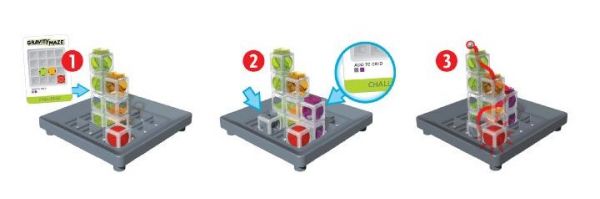 A Thinkfun Gravity Maze a gravitáció elvén alapuló egyik legújabb játék. A játék során a színes, átlátszó tornyokat úgy kell felépíteni, hogy a fém kis golyó könnyedén eljusson a céltoronyig  az alagutakon keresztül. A játék nagy odafigyelést igényel, mivel nem mindegy, hogy az egyes tornyok elhelyezésével merre irányítjuk majd a golyót.