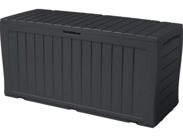 Kivételesen tágas kerti tároló nagyon hasznos funkciókkal. Kényelmes ülőhelyként szolgálhat 2 személy számára, valamint kerti tartozékok, mint locsolókannák, virágcserepek, párnák és apró kerti szerszámok tárolására ládaként. A tároló egyszerű formatervezése minden stílusú, így a klasszikus, valamint a modern kertbe is passzol. A termék ellenáll a kedvezőtlen időjárási feltételeknek és könnyű tisztán tartani.