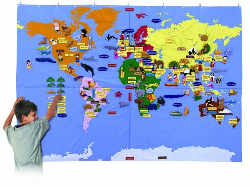 Rengeteg kiegészítője segítségével megtanulhatod hogy hol helyezkednek el a különböző országok, földrészek, óceánok és népcsoportok.