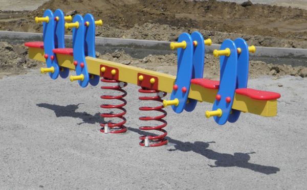 Közterületi célra, óvodákba, iskolákba, több gyermek által történő egyidejű használatra ajánljuk ezt a négyüléses, dupla rugós mérleghintát.