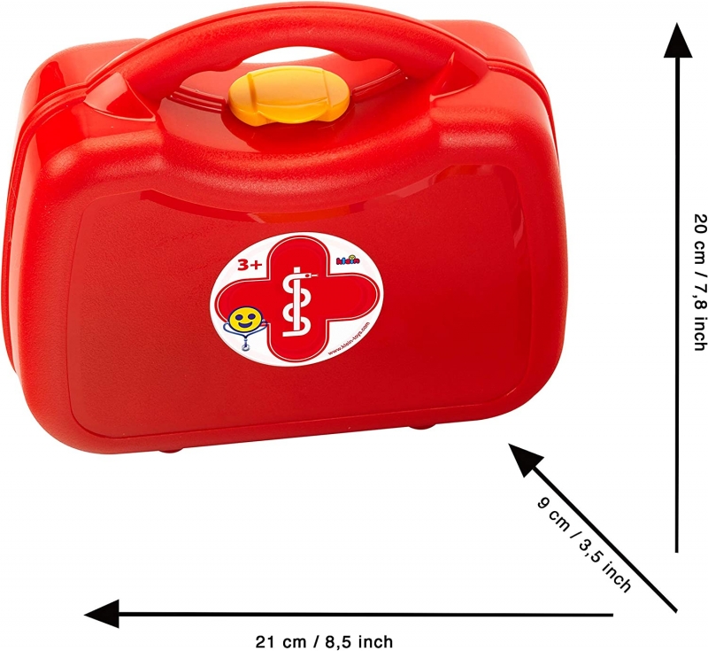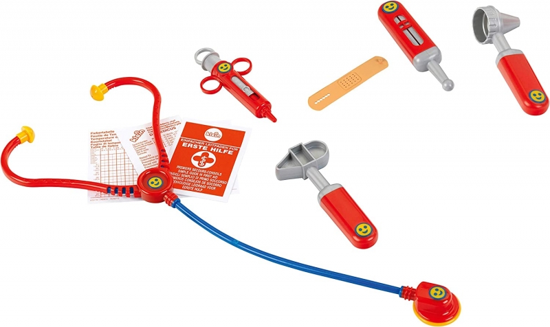 Az orvosi kistáska szett 1 db orvosi táskát, 1 db lázmérőt, 1 db reflexkalapácsot, 1 db fültükröt, 1 db sztetoszkópot, 1 db ragtapaszt és 1 db fecskendőt tartalmaz.