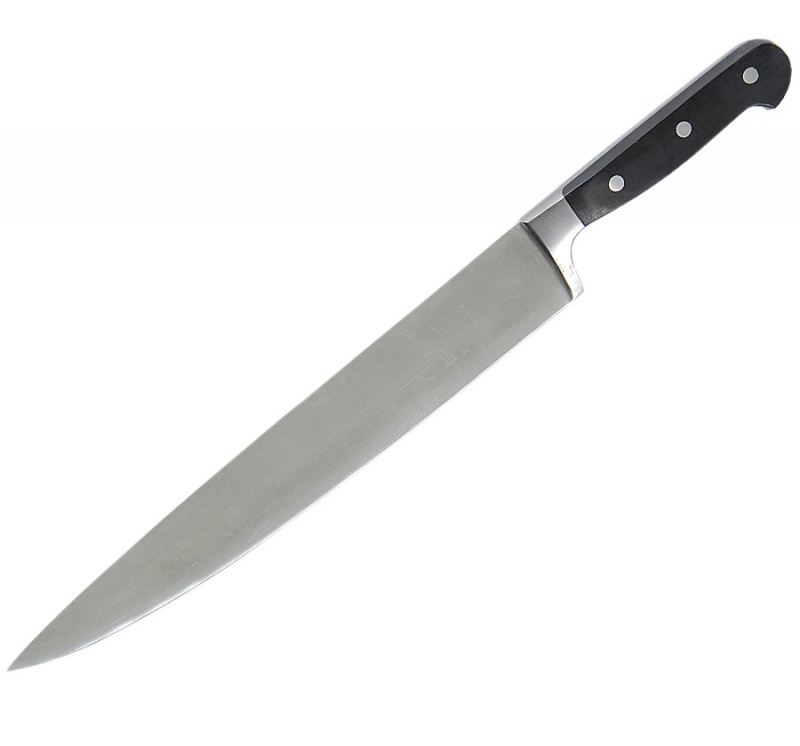 Rozsdamentes acélból készült, kovácsolt séf kés bakelit nyéllel.