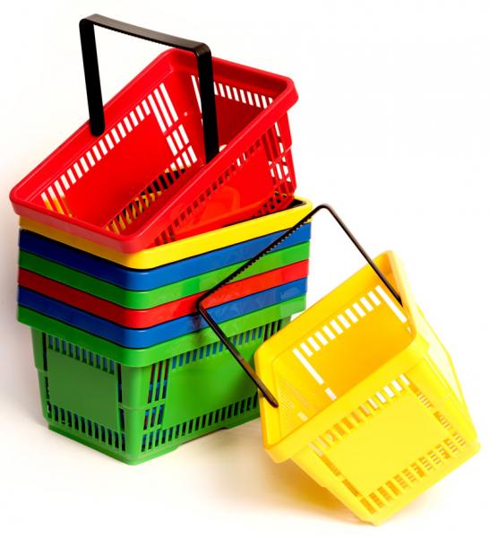 A műanyag bevásárlókosarak kiváló kiegészítői lehetnek a boltos játékoknak.