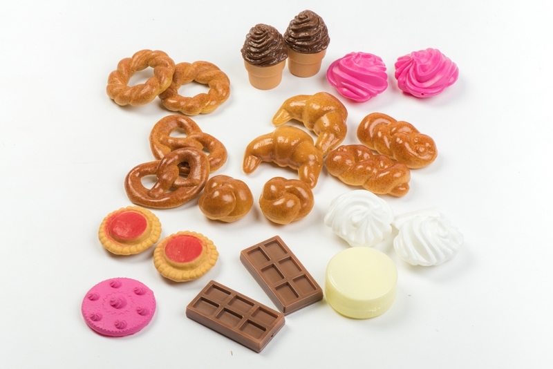 Tartalma: 22 darab műanyag péksütemény, desszert