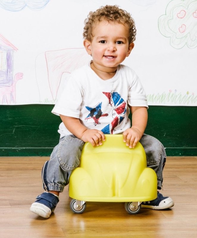 Minden irányba forduló műanyag jármű kisgyerekeknek. Az alacsony ülésmagasság és a háttámla növeli a gyermekek biztonságérzetét. Több kisautó összekötve akár egy kis konvoj is kialakítható. Ülésmagassága 13 cm. Négykerekű, lábbal hajtós. A terméket szétszerelt állapotban szállítjuk.