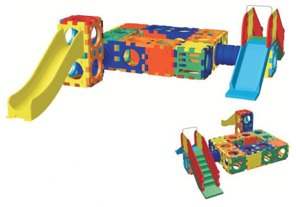 - 1 db lépcső korláttal és csúszdával. Az elemen lévő lyuk átmérője 44 cm.