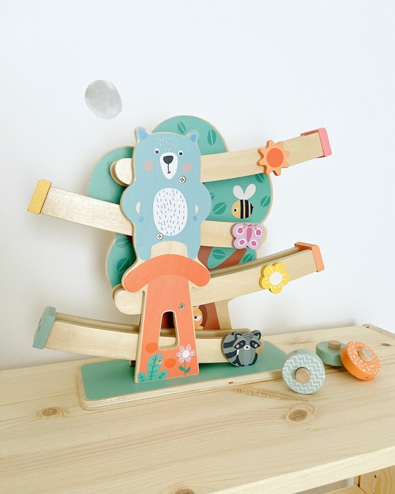 Itt az idő egy gyors kalandra az erdő állataival! Modern, színes, állatos golyópálya az erdő lakosaival díszítve. Látványos és leköti a gyerekek figyelmét. Erős és széles talp biztosítja a stabil és biztonságos játékot.