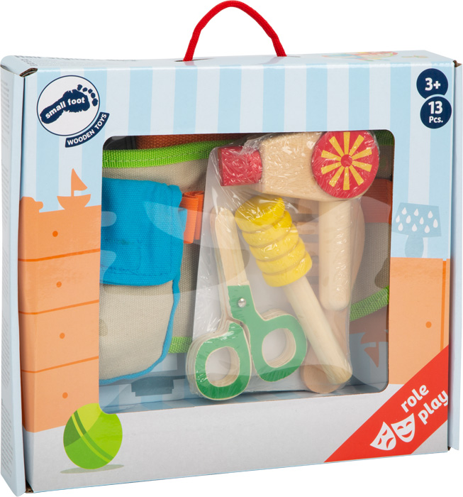 A készlet 13 db-os és az alábbiakat tartalmazza: 4 db hajgumit, 4 db műanyag hajcsatot, 1 db ollót, 1 db hajszárítót, 1 db fésűt, 1 db hajformázót és egy praktikus, tépőzárral állítható övet tartalmaz.