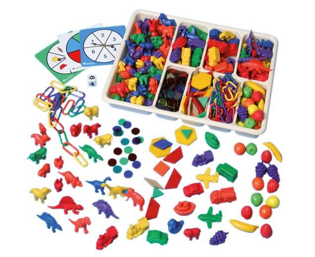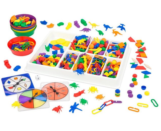 A szortírozó készlet segít megismertetni a gyerekekkel a matematika alapjait (számolást, szortírozást, párosítást). A játékok előtt hagyjunk időt a gyerekeknek, hogy megismerjék a készletben található tárgyakat, összehasonlítsák azokat színük és méretük alapján.