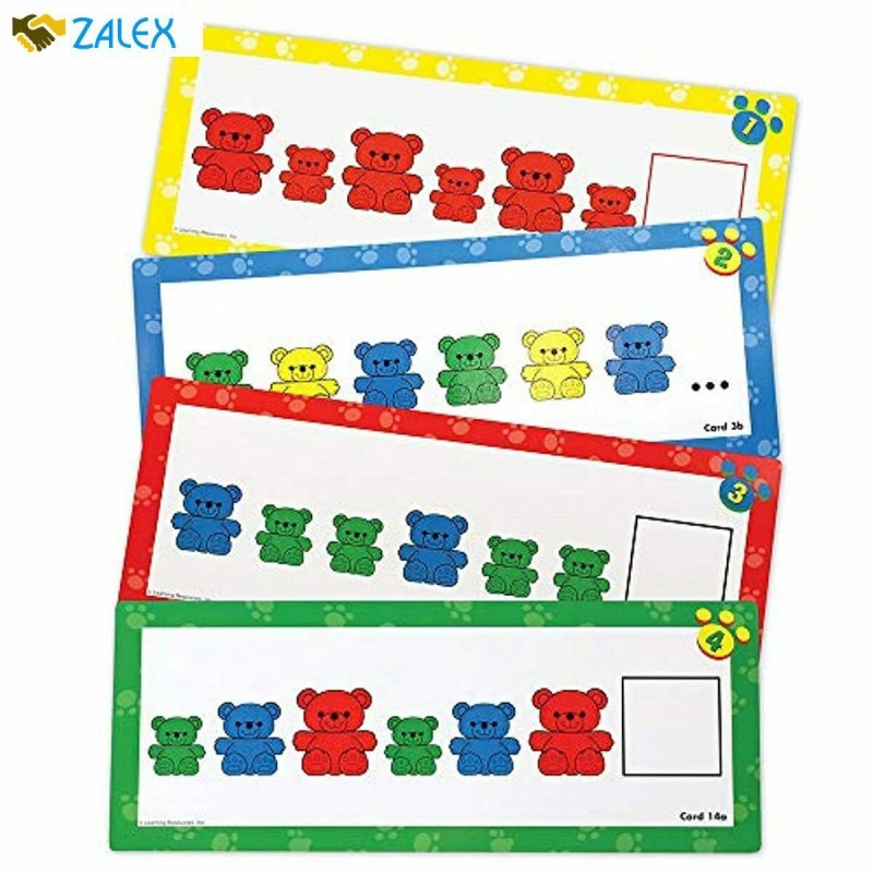 A Learning Resources macicsaládhoz tartozó feladatkártya szettjében 16 db kétoldalú, színes feladatkártya található.