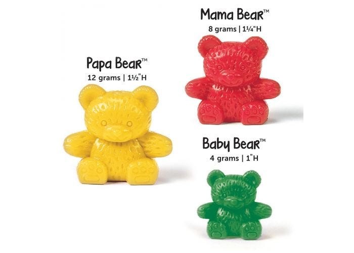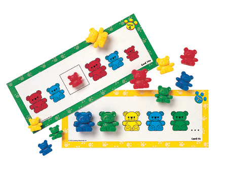 Milyen nagyságú és színű maci következik, vagy hiányzik a sorból? Keresd meg és helyezd a feladatkártyára!