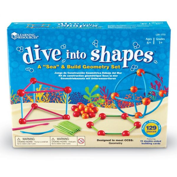 A Learning Resources 3D geometriai építő készletében 129 különböző elem van.