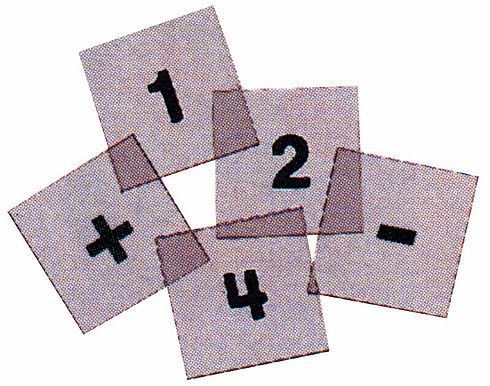 A kártyákon a számok egy áttetsző alapon feketével vannak feltüntetve.