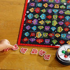 2, Mindenki a játéktáblára szegezi a szemét, és megpróbálja megkeresni a robotfejet, amelynek színei megegyeznek a kipörgetett színekkel.