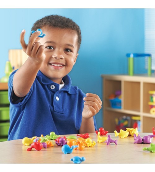 A Learning Resources szortírozó tengeri állatok készlete 72 db 3-4 cm-es figurát tartalmaz, 6 különböző színben.