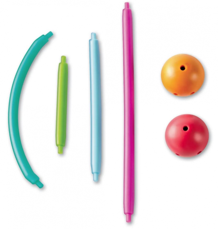 A csomagban található egyenes, görbe, hosszú, rövid vagy épp közepes méretű pálcák és a csatlakozó gömbök mind arra ösztönzik a gyerekeket, hogy alkossanak. Mindez amellett, hogy kimondottan izgalmas játékot eredményez, számos matematikai készséget fejleszt. A térlátást, a kritikus gondolkodást, a finommotorikus készségeket és a geometriai alapjait tapasztalati úton tanulhatják meg vagy fejleszthetik már meglévő tudásukat.